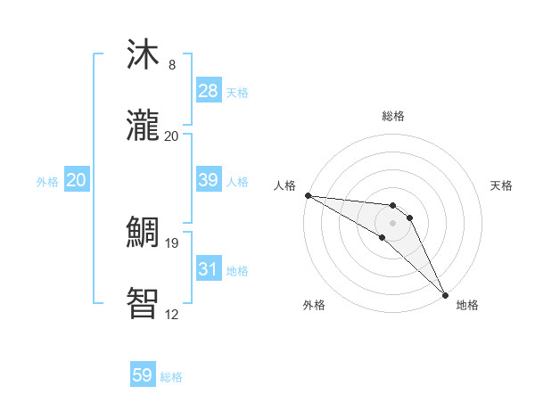 沐瀧 鯛智さんの総格は59画の1点!