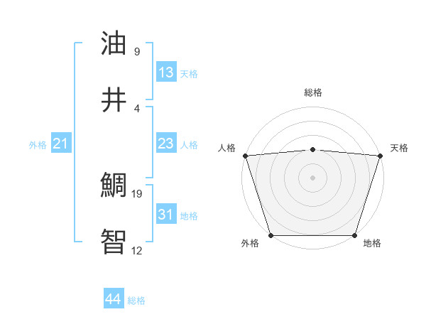 油井 鯛智さんの総格は44画の2点!