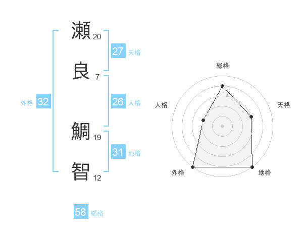 瀬良 鯛智さんの総格は58画の4点!