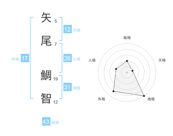 矢尾 鯛智さんの外格は17画の4点!