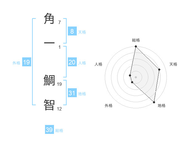 角一 鯛智さんを姓名の画数から五運を鑑定