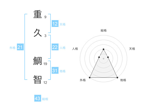 重久 鯛智さんの総格は43画の2点!