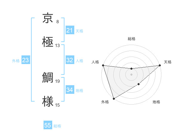 京極 鯛様さんの総格は55画の1点!