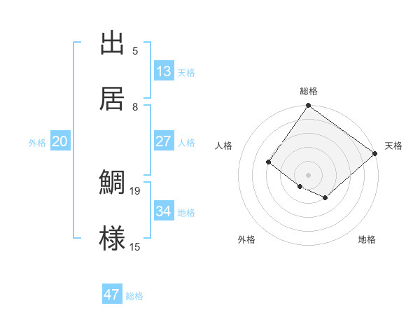 出居 鯛様さんを姓名の画数から五運を鑑定
