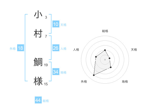 小村 鯛様さんを姓名の画数から五運を鑑定