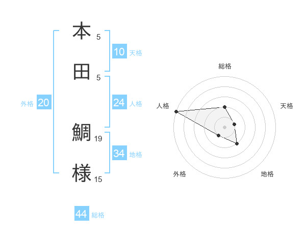 本田 鯛様さんを姓名の画数から五運を鑑定