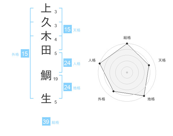 上久木田 鯛生さんを姓名の画数から五運を鑑定