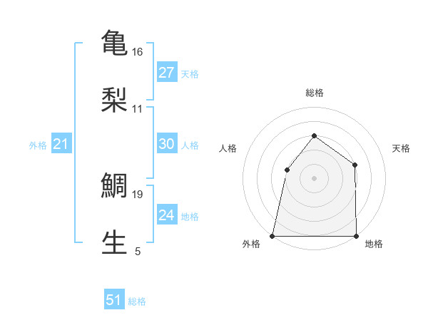 亀梨 鯛生さんを姓名の画数から五運を鑑定