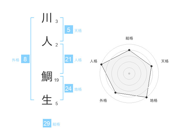 川人 鯛生さんを姓名の画数から五運を鑑定