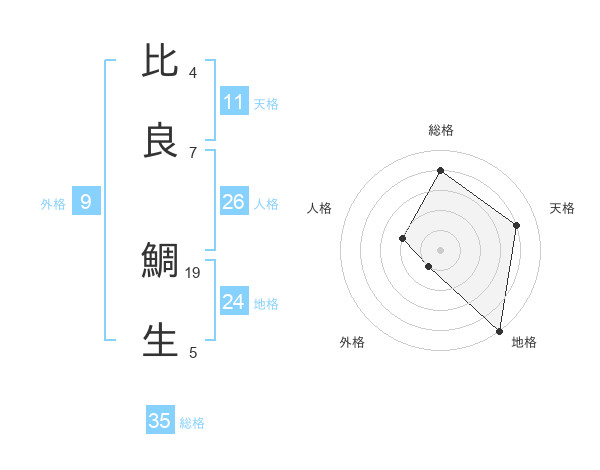 比良 鯛生さんを姓名の画数から五運を鑑定