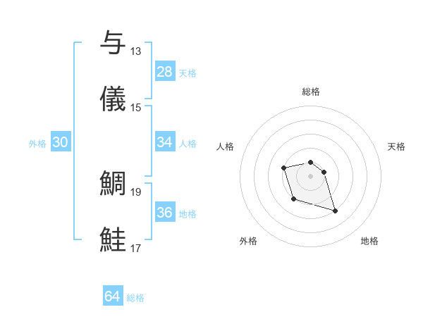 与儀 鯛鮭さんを姓名の画数から五運を鑑定