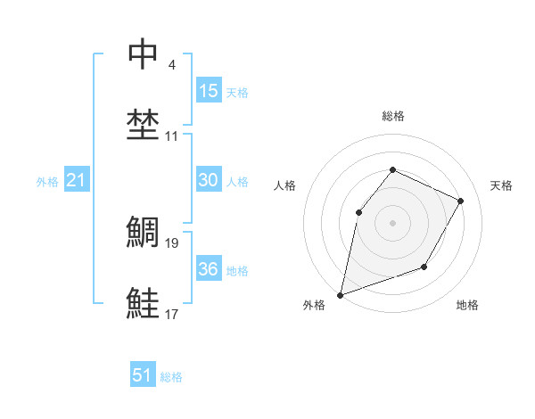 中埜 鯛鮭さんの総格は51画の3点!