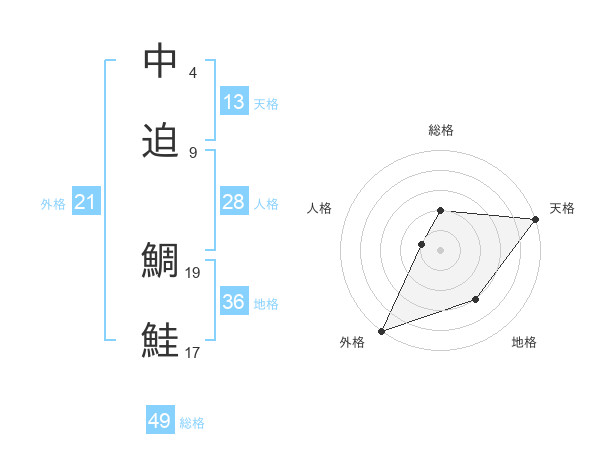 中迫 鯛鮭さんの総格は49画の2点!
