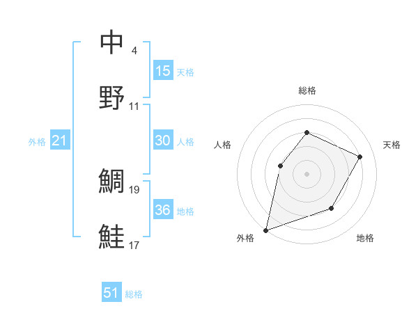 中野 鯛鮭さんを姓名の画数から五運を鑑定
