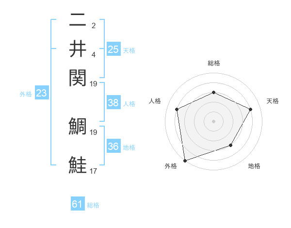 二井関 鯛鮭さんの総格は61画の3点!