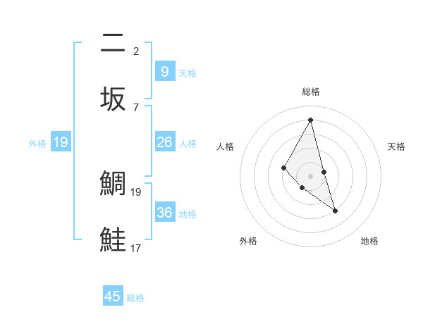 二坂 鯛鮭さんの総格は45画の4点!