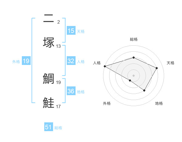 二塚 鯛鮭さんの総格は51画の3点!