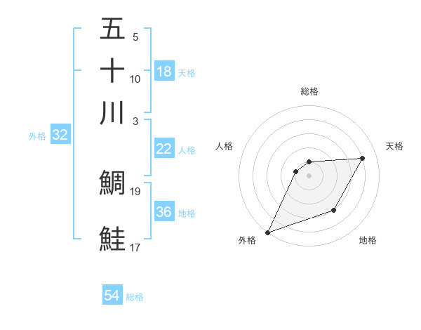 五十川 鯛鮭さんを姓名の画数から五運を鑑定