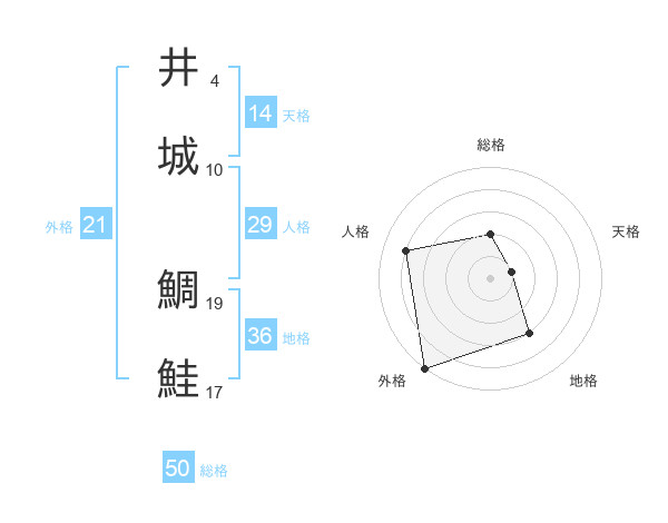 井城 鯛鮭さんを姓名の画数から五運を鑑定