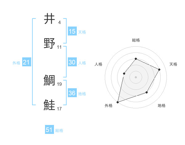 井野 鯛鮭さんを姓名の画数から五運を鑑定