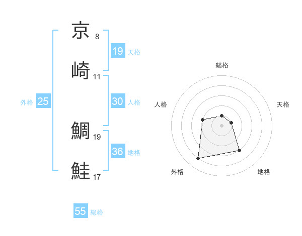 京崎 鯛鮭さんの総格は55画の1点!