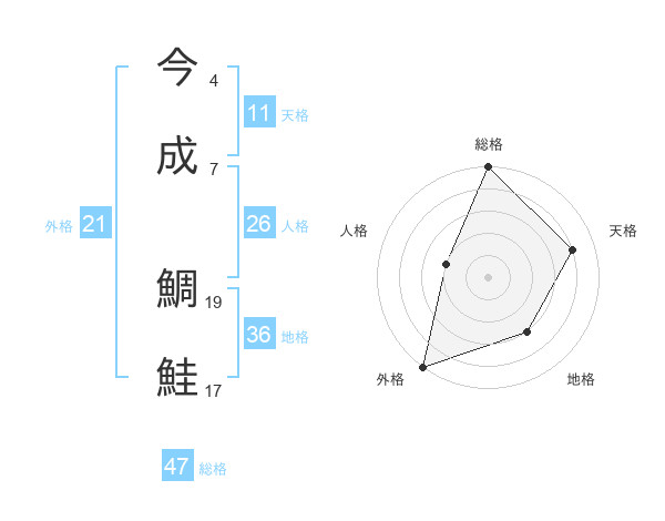 今成 鯛鮭さんを姓名の画数から五運を鑑定