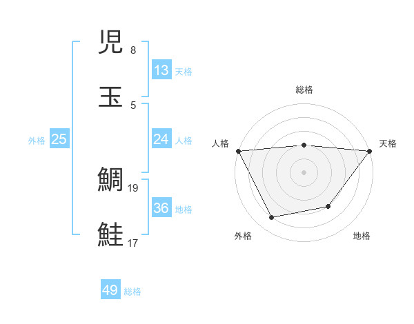 児玉 鯛鮭さんの総格は49画の2点!