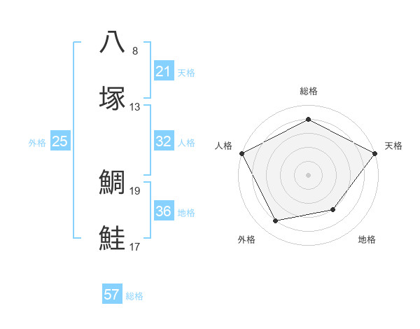 八塚 鯛鮭さんの総格は57画の4点!