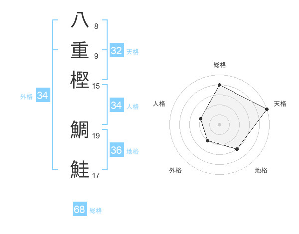 八重樫 鯛鮭さんの総格は68画の4点!
