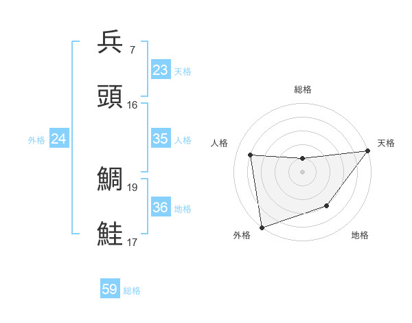 兵頭 鯛鮭さんの総格は59画の1点!