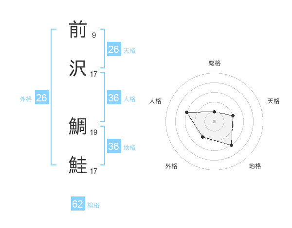 前沢 鯛鮭さんの総格は62画の1点!