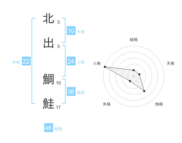 北出 鯛鮭さんを姓名の画数から五運を鑑定