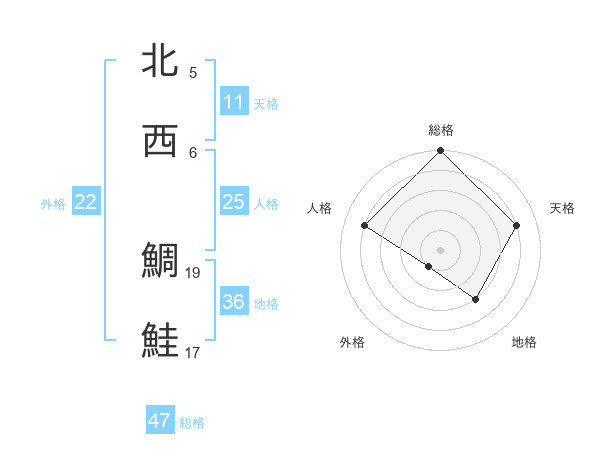 北西 鯛鮭さんを姓名の画数から五運を鑑定