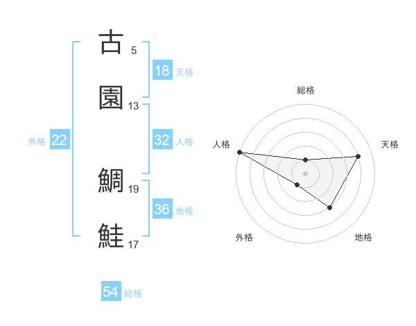 古園 鯛鮭さんを姓名の画数から五運を鑑定