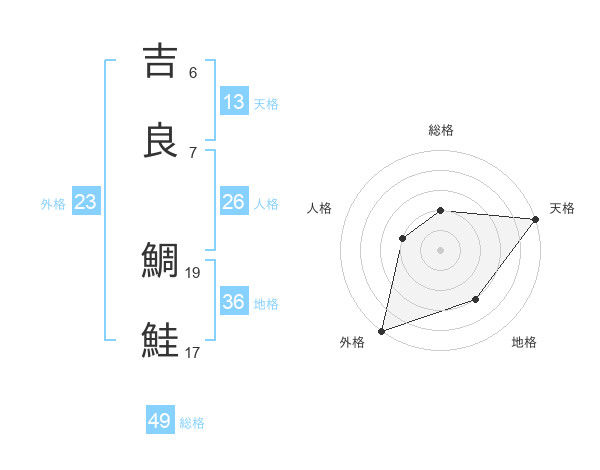 吉良 鯛鮭さんの天格は13画の5点!