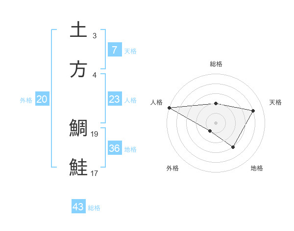 土方 鯛鮭さんを姓名の画数から五運を鑑定