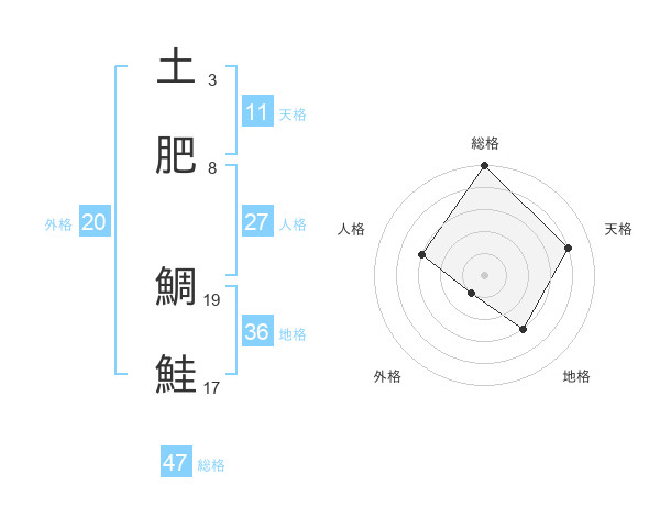 土肥 鯛鮭さんの総格は47画の5点!