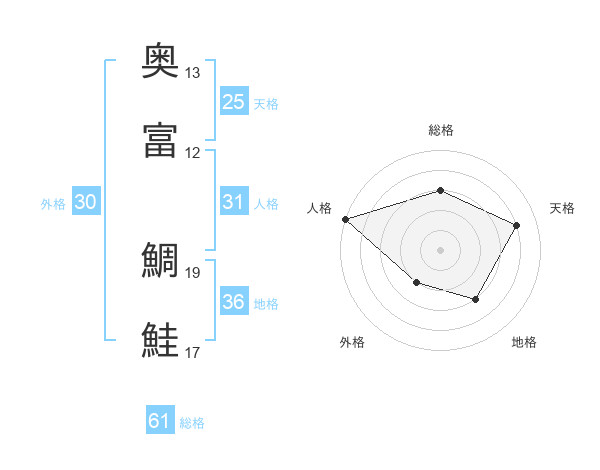 奥富 鯛鮭さんの総格は61画の3点!