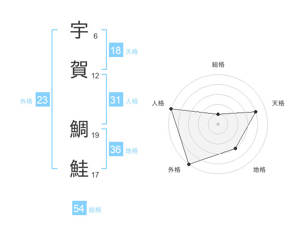 宇賀 鯛鮭さんの総格は54画の1点!