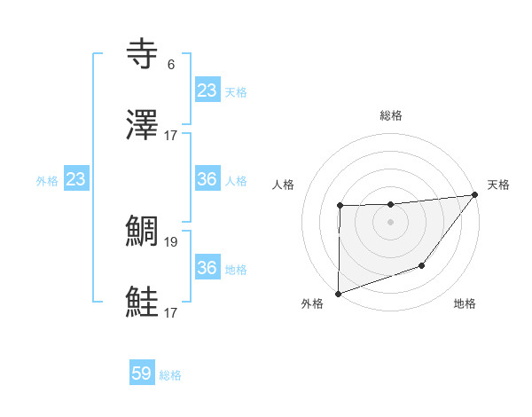 寺澤 鯛鮭さんの天格は23画の5点!