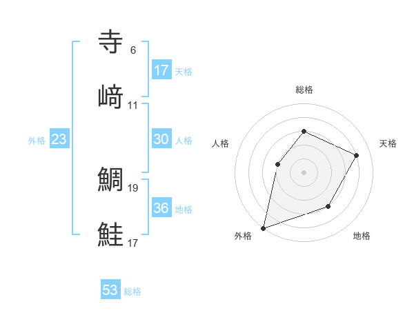 寺﨑 鯛鮭さんの総格は53画の3点!