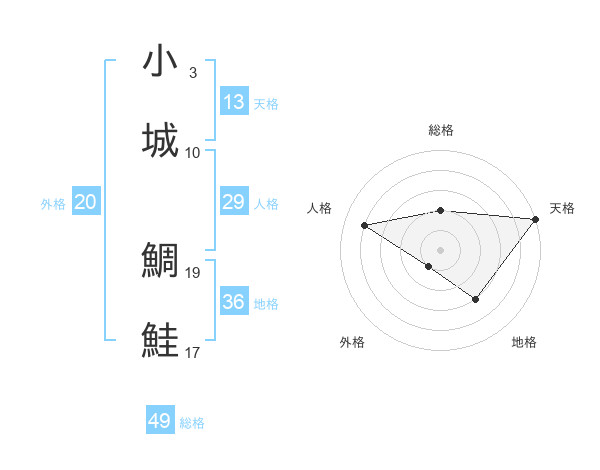 小城 鯛鮭さんを姓名の画数から五運を鑑定