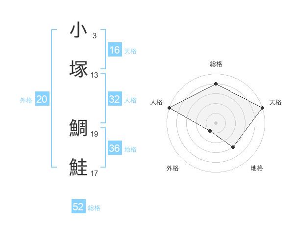 小塚 鯛鮭さんの総格は52画の4点!