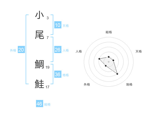 小尾 鯛鮭さんを姓名の画数から五運を鑑定