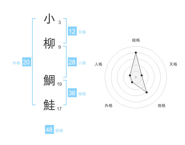 小柳 鯛鮭さんを姓名の画数から五運を鑑定