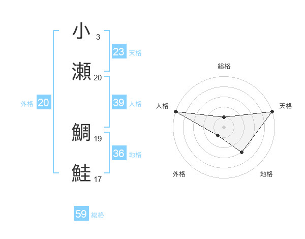 小瀬 鯛鮭さんの総格は59画の1点!
