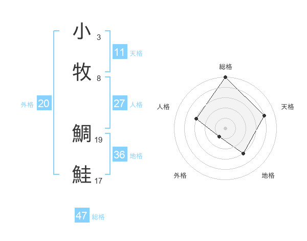 小牧 鯛鮭さんの総格は47画の5点!