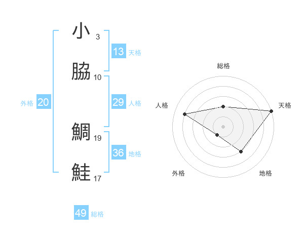 小脇 鯛鮭さんを姓名の画数から五運を鑑定