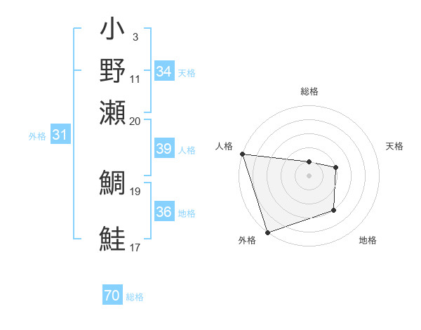 小野瀬 鯛鮭さんの総格は70画の1点!