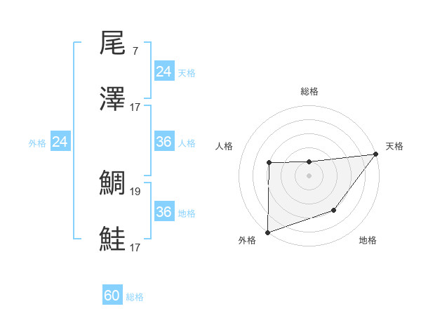 尾澤 鯛鮭さんの天格は24画の5点!